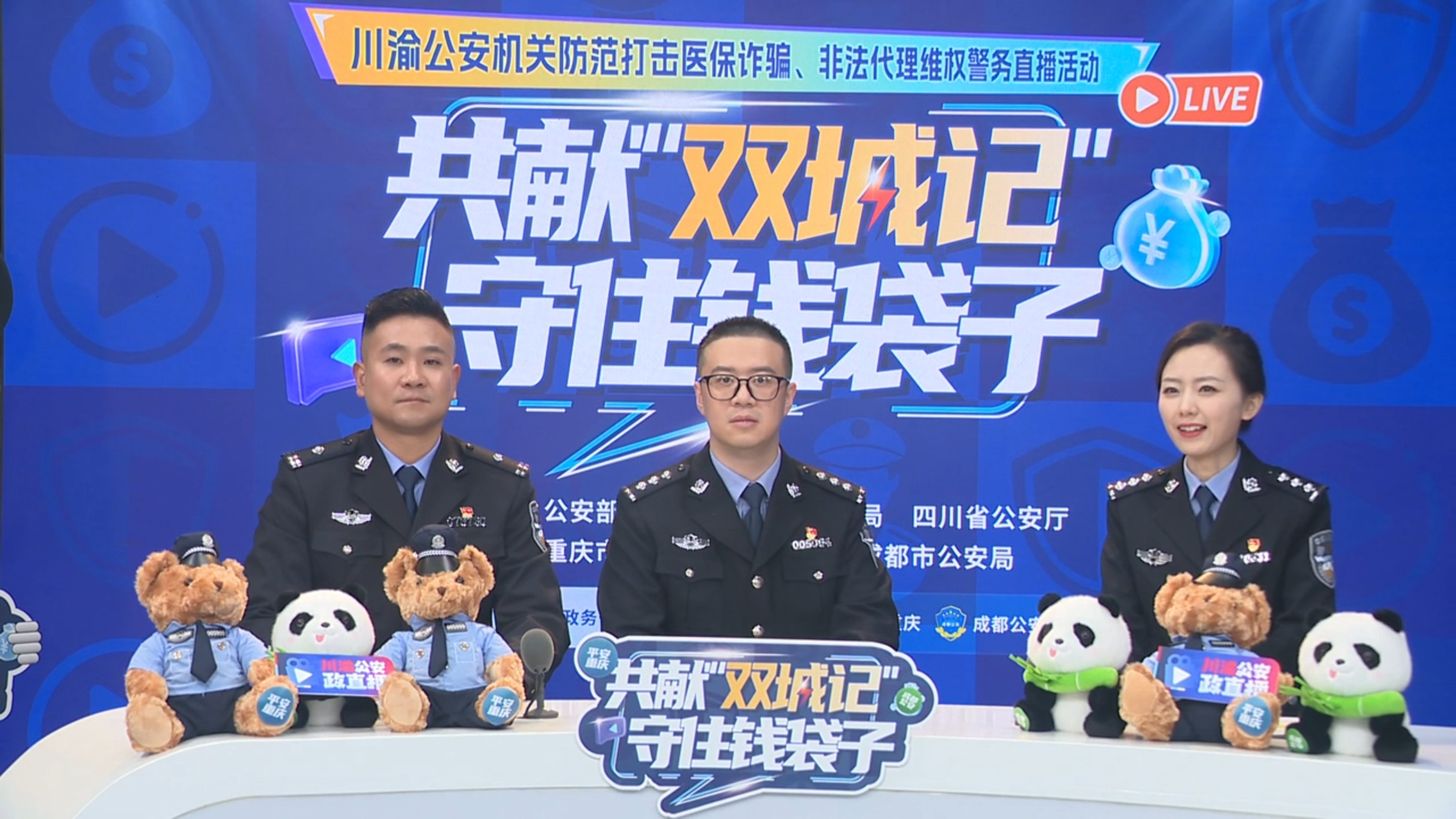 代理退保有什么危害?如何用“火眼金睛”辨别医保领域、保险行业的非法行为?新年伊始,成渝地区双城经济圈建设迎来5周年之际,重庆市公安局刑侦总队联合成都市公安局共同开展“共献‘双城记’守住钱袋子”川渝公安防范打击医保诈骗、非法代理维权警务直播。