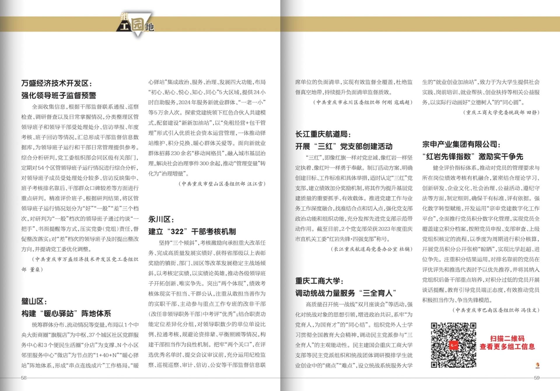 中共重庆市委机关刊物《当代党员》2025年第1期刊发重庆市万盛经济技术开发区、璧山区、永川区、长江重庆航道局、重庆工商大学、宗申产业集团有限公司组工信息。全文如下: