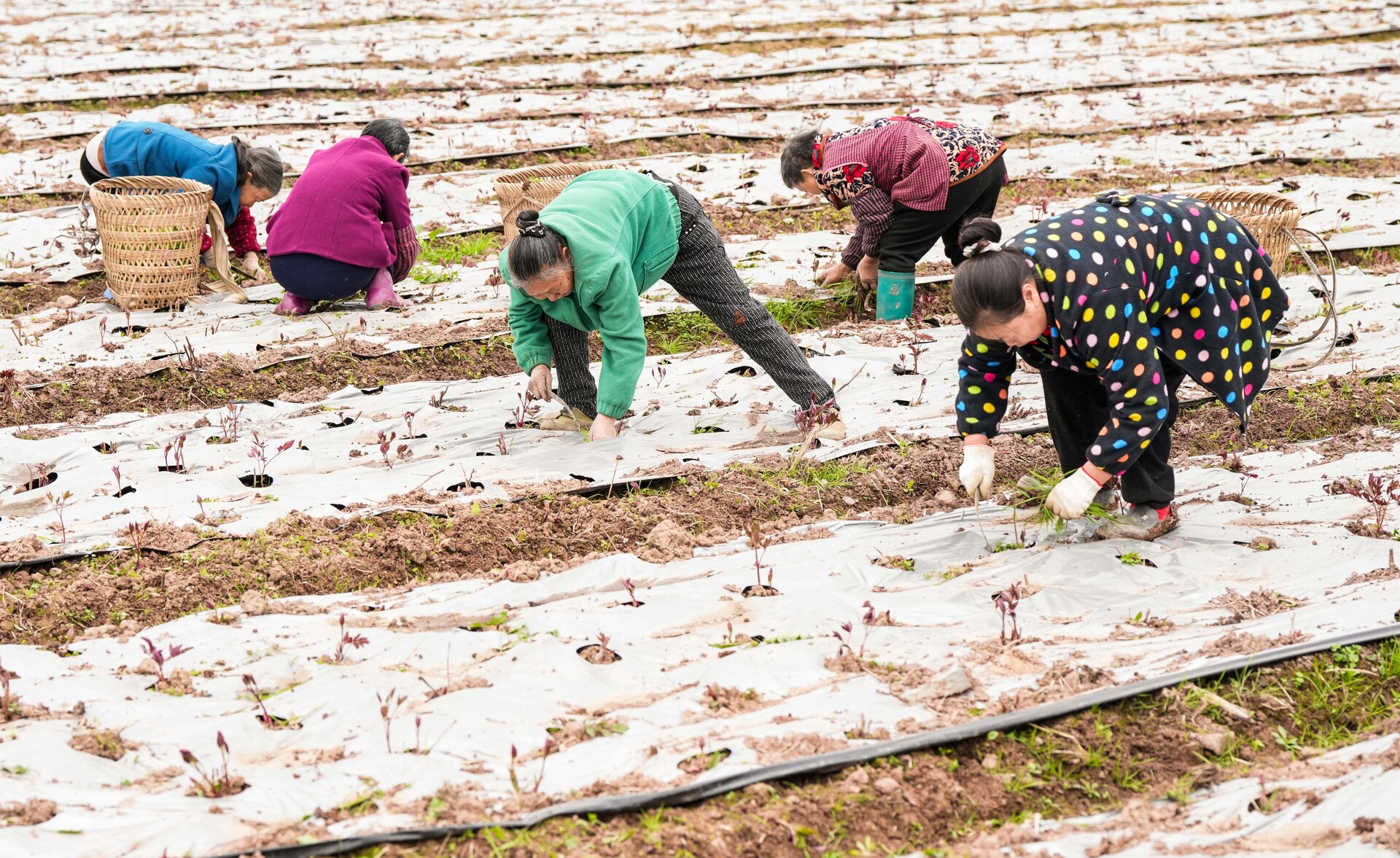 镜头之外,花农正忙。在垫江县桂溪街道玉河社区芍药花基地,工人在地里除草,为后续施肥做好准备。据了解,该基地面积40亩,共种植7种不同类型的芍药花,预计在下月初芍药花将开放,届时将为游客和周边市民提供一个新的打卡地。
