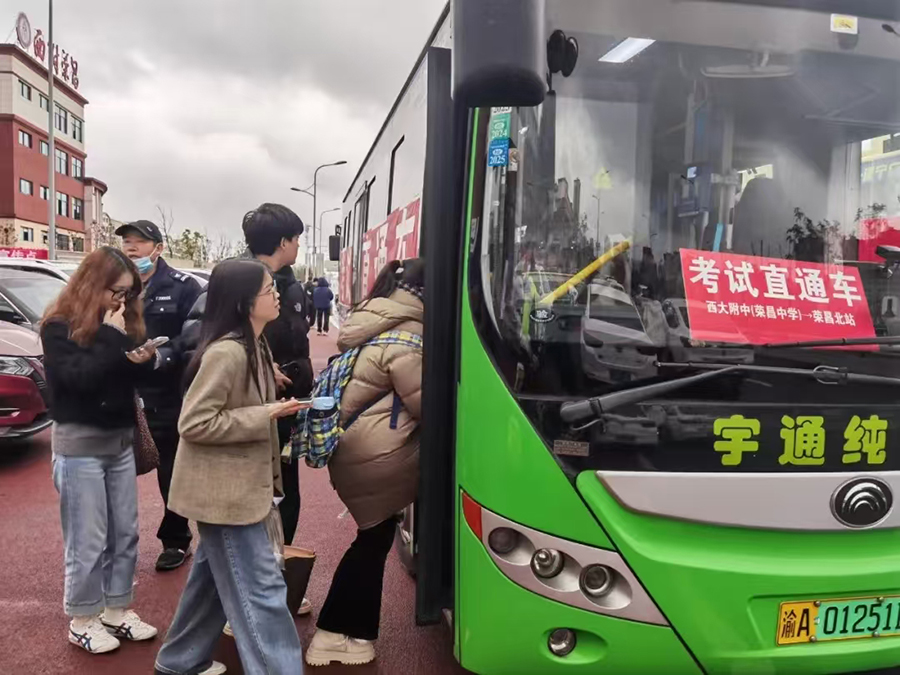 3月29日,考生在荣昌乘坐考试直通车前往考场。新华网发(荣昌区融媒体中心 供图)