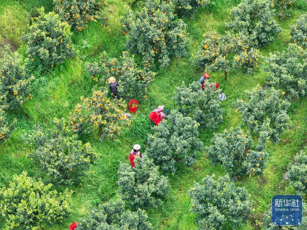 眼下,重庆市石柱县王场镇万亩晚熟柑橘迎来丰收季,当地农民抢抓农时采摘柑橘,一派繁忙景象。