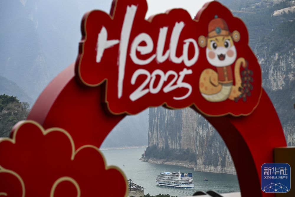 游轮行驶在重庆奉节瞿塘峡一带(2025年2月13日摄)。