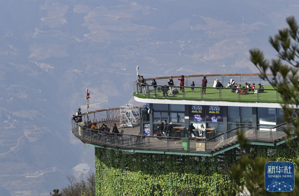 游客在重庆奉节三峡之巅风景区游览(2024年3月11日摄)。