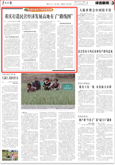 重庆市发展和改革委员会党组书记、主任高健表示,市发展和改革委员会还将进一步聚焦民营企业最关心、最紧迫、最现实的问题,在破除隐性壁垒、规范行政执法、清偿拖欠账款政策直达快享等方面推出一批切口小、见效好的微改革,着力营造民营经济发展的良好氛围。