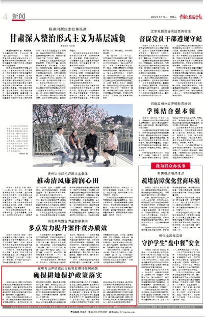 同时,该县纪委监委立足职能定位,运用“室组地”联动机制,深入全县乡镇街道和相关部门开展实地督查,加强与巡察、审计等部门的沟通协作,建立健全信息共享、问题线索移送等工作机制,形成耕地保护监督合力,推动耕地保护政策落地落实。