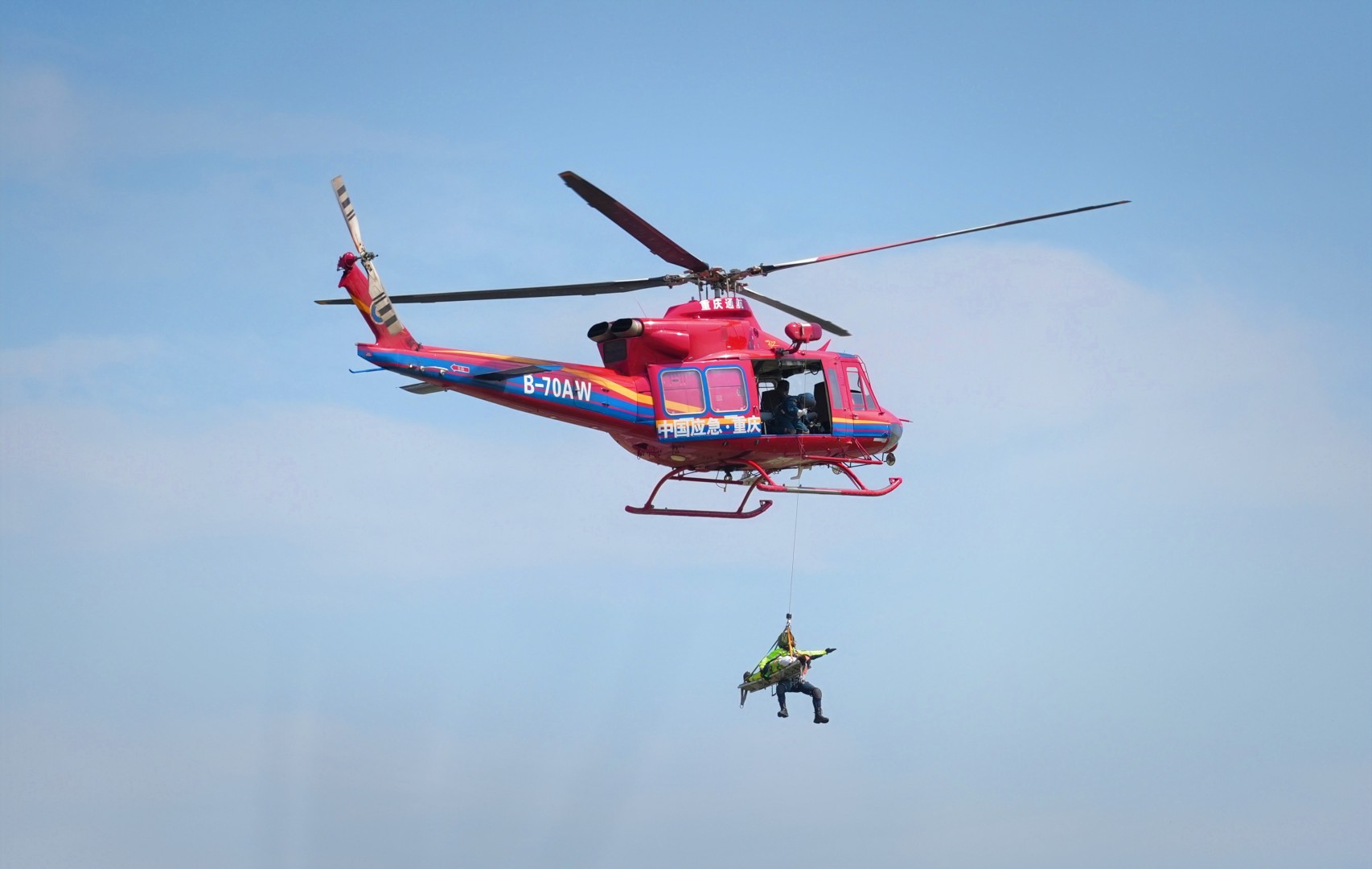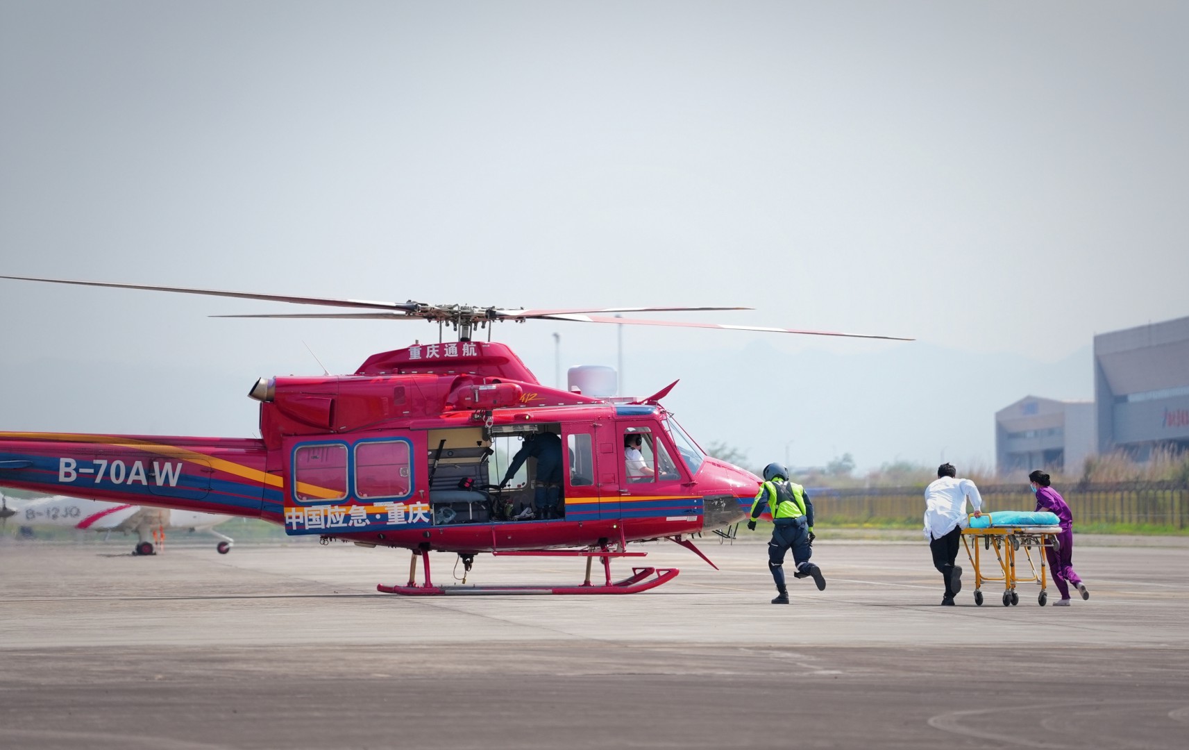 据了解,执行本次救援人员快速投送任务的是重庆市航空救援总队贝尔412直升机。该直升机最大起飞重量7吨、最大航速260公里/小时、最大航程672公里、可搭载乘客13名,续航里程可达350公里,为综合救援直升机。机舱内配备了除颤仪、注射泵、心率检测仪,以及医疗担架等专业设备。