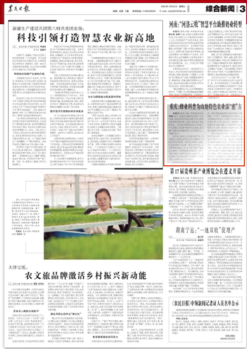 近年来,重庆大力发展中蜂产业,作为现代山地特色高效农业的关键板块,凭借优质自然资源,不断优化蜂蜜产业链,打造知名蜂产品品牌。截至2023年底,全市蜂群保有量达159.38万群,蜂蜜产量位居全国第六,蜂群数量名列前茅。其中,“城口蜂蜜”品牌价值高达10.92亿元,在全国蜂产品区域品牌中位列第四,已然成为城口县特色农业的闪亮名片。