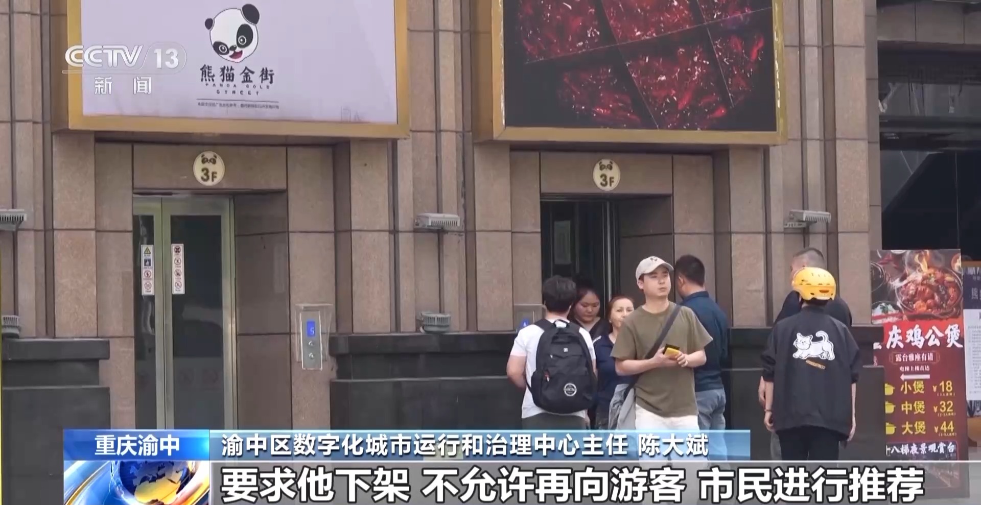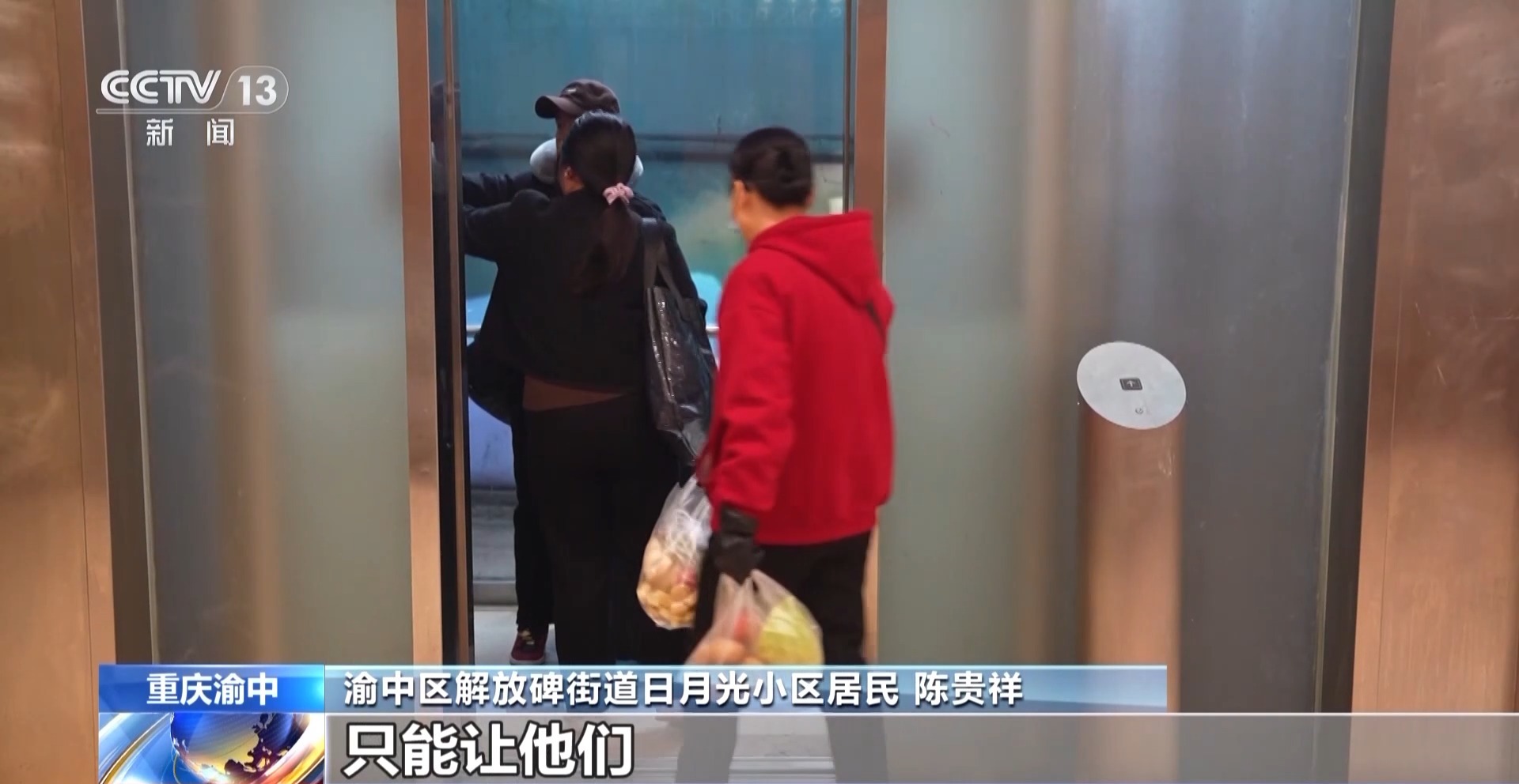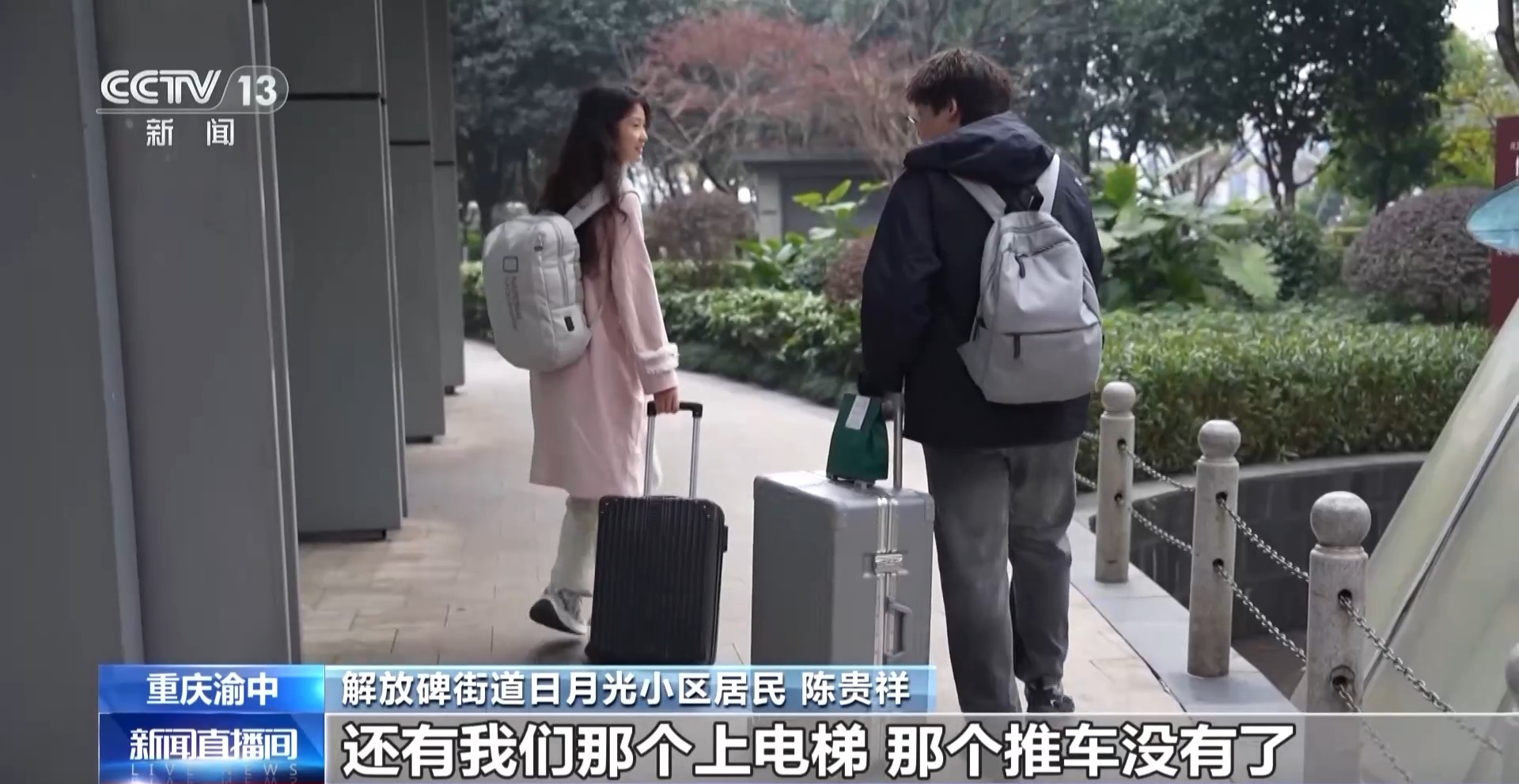 渝中区解放碑街道日月光小区居民 陈贵祥:游客特别多,多到上电梯一趟不够。他们拉着行李箱只能让着他们,我最多一次等了三趟,造成了生活困扰。