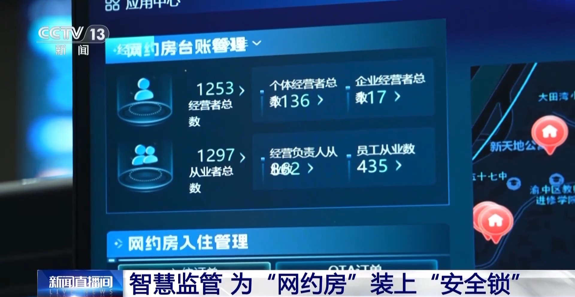 重庆市公安局渝中区分局科技信息化科民警 谭猛:首先,公安部门会对“网约房”经营者的一些基本信息标准,包括标准地址进行基本的审核;所有信息会同步派发给区级各个部门,各个部门会对他职责范围内的相关管理内容进行审核;审核通过后经营者就会获取到他的房源码。