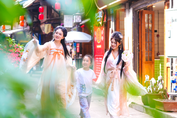 “穿马面裙在古镇拍照,简直和美景融为一体。”来自渝北区的李娜南特意和女儿一起穿汉服游古镇,并根据指引在“戏楼票号”兑换了专属茶点。“最开心的是在磨坊广场偶遇了汉服快闪表演,感觉来得特别值,很喜欢这样的活动。”