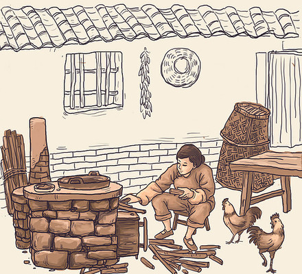 母亲刚刚嫁入父亲家时,没有自己的厨房。分家以后,只好在唯一的居室窗外搭一个简易的灶台。天空为顶,屋檐作厨。灰尘与小动物的粪便时常前来光顾,夏天的烈日、冬天的寒雨都曾经羁绊过母亲的生活。但勤劳的母亲显然不会被这些艰难打倒,她挑来大桶的清水,将锅灶擦了又洗,照样把日子经营得活色生香。惹得邻里乡亲时常前来观摩母亲的手艺,并回去教导自家的媳妇。