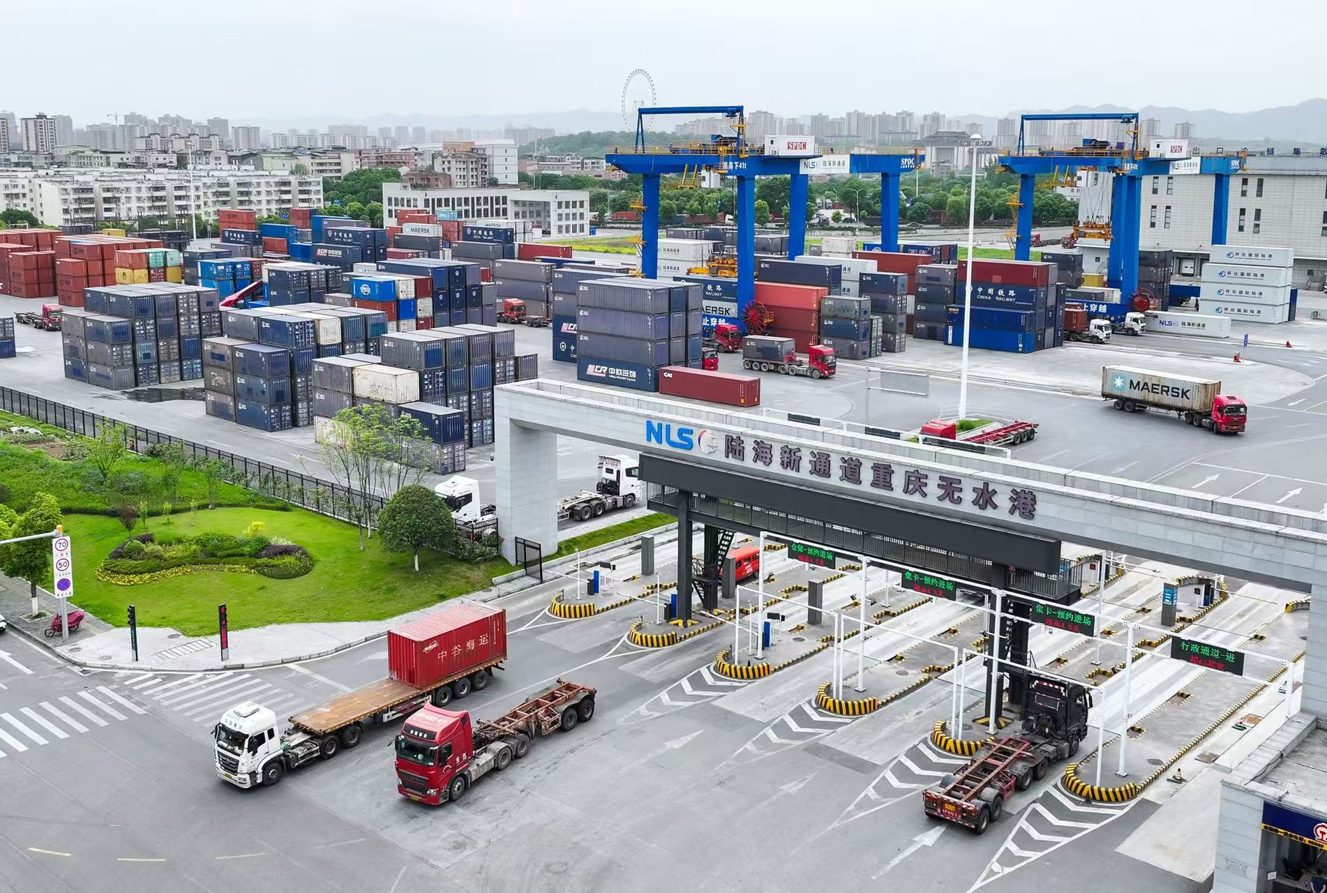 5月9日,位于重庆市沙坪坝区的西部陆海新通道重庆无水港呈现一片繁忙景象:集装箱卡车频繁进出,两台远控智慧龙门吊的下方,卡车排起长队,准备将一个又一个集装箱通过多式联运发往全球各地。据中国铁路南宁局集团有限公司消息,截至5月8日上午,今年以来西部陆海新通道铁海联运班列运输货物已突破50万标箱,达到508336标箱,同比增长71.6%。