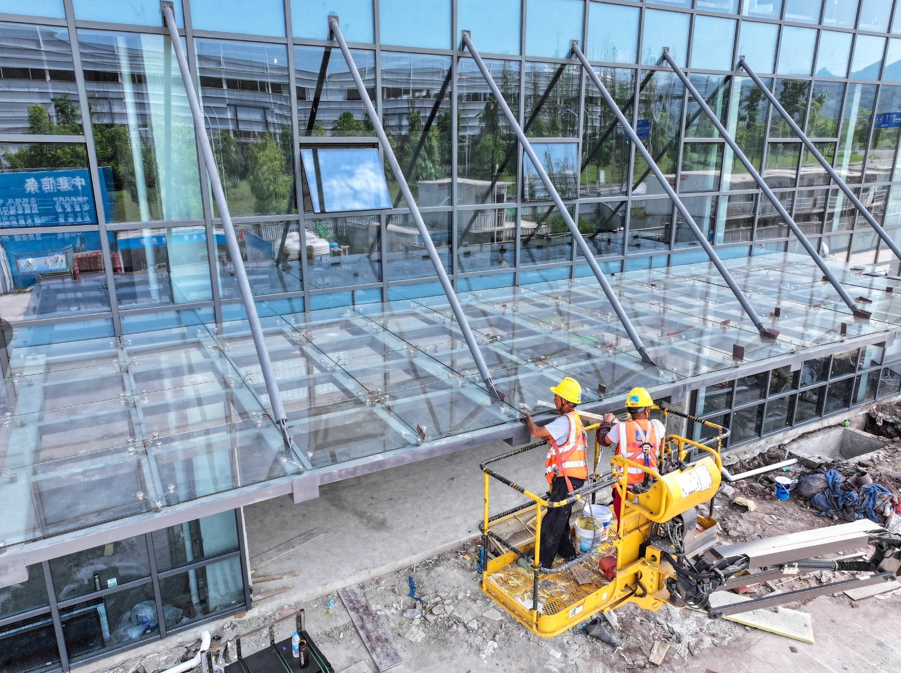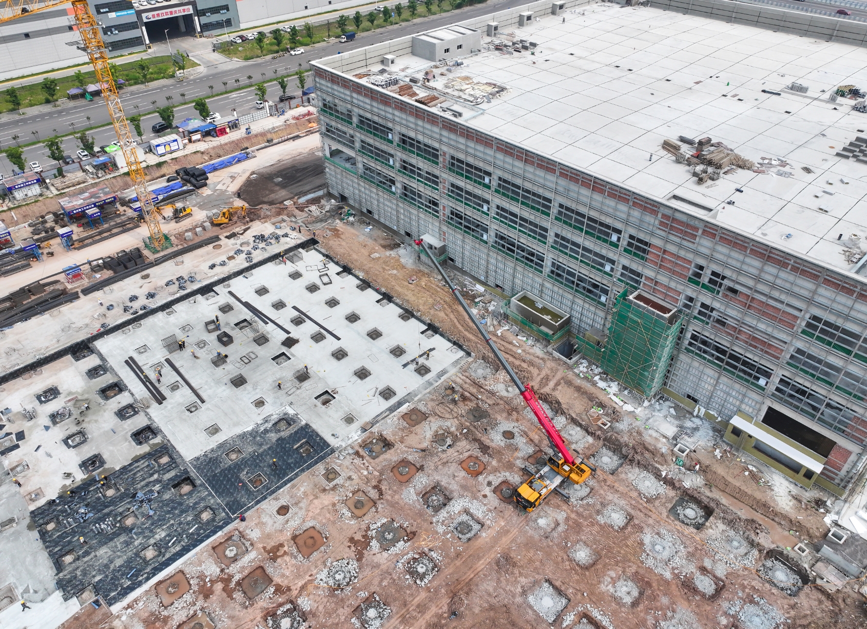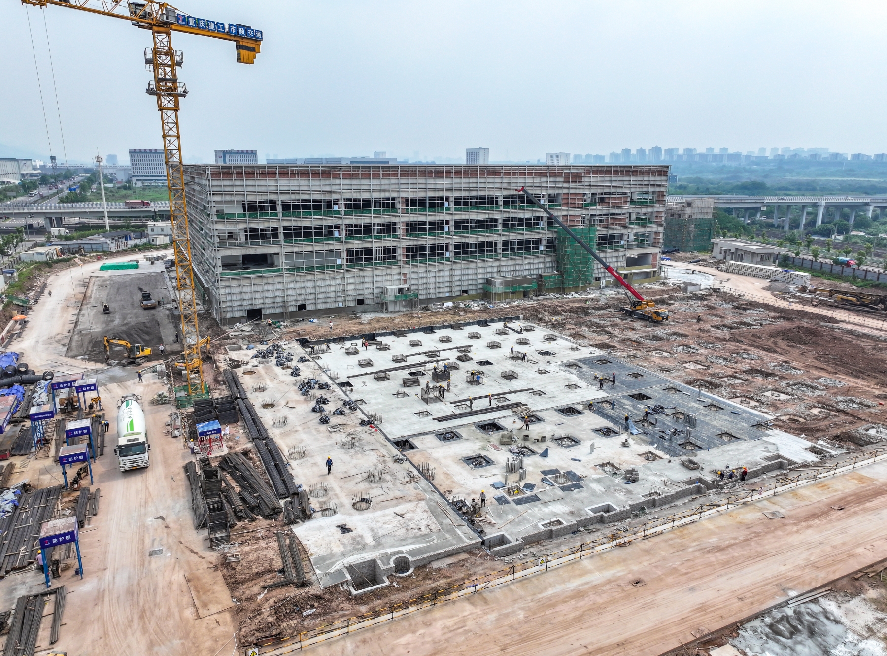 位于不远处的国际物流枢纽园区,重庆医药进口分销物流综合基地一期主体结构顺利完工,目前正加紧开展外立面施工、安装工程及配套环境工程施工,预计今年底建成投用;二期工程旋挖桩施工已完成,正在进行筏板施工,预计5月底可完成基础施工。