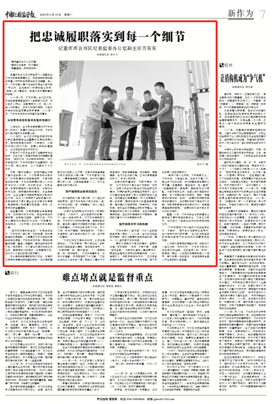 正是这种严谨细致、尽职尽责的“执拗”,让万东东成为单位当之无愧的“笔杆子”。他用文字生动反映全区纪检监察工作情况,负责的信息工作稳居全市前列;合川兴农融资担保有限公司系列腐败案件办结后,他梳理出该案暴露的“权力过度集中”等5类问题,撰写的案例分析直指制度漏洞,推动建立了担保项目“两审两会”内审机制,促成全区开展国企领域专项整治;在抽调至市委巡视办工作期间,他主笔起草的调研报告、经验材料等得到多方面肯定,撰写的文章多次为决策提供参考。