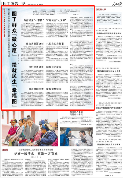 “许多代表利用代表建议将自己的真知灼见和收集来的‘民之所盼’,通过人大这个平台向有关部门提出,切切实实地解决了群众的急难愁盼问题。”张国甫介绍,有的代表根据群众要求,建议开展“两癌筛查”和义诊服务,已经转化为相关部门的实际举措。