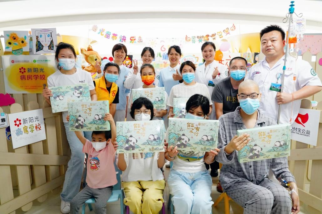 在活动室另一侧,9岁的小患者萱萱正趴在病床上写日记:“今天我和妈妈做了龙舟,还听了医生阿姨讲怎么申请救命钱。虽然我的头发掉光了,但我觉得自己像个小英雄……”她的日记本上贴满了医护人员送的小贴纸,床头柜摆着志愿者送来的毛绒玩具。