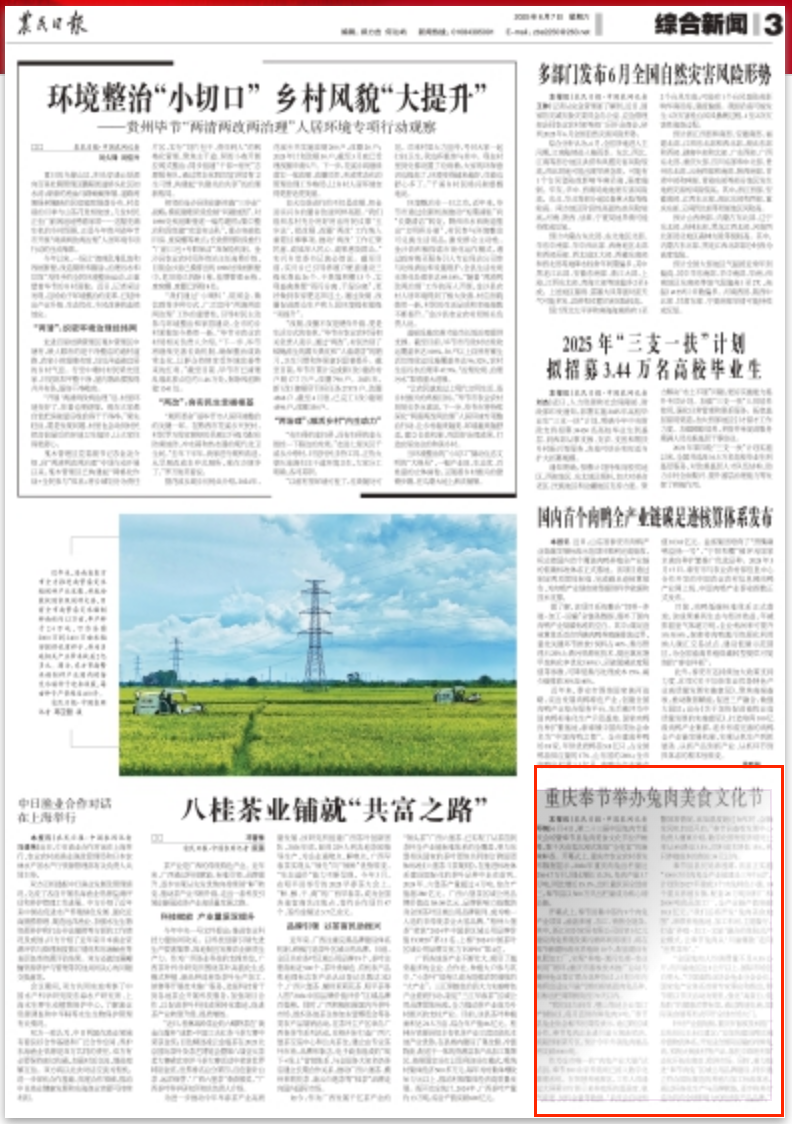 针对产业链短板,重庆市畜牧技术推广总站站长王永红建议:“应加快建设跨区域冷链物流体系,开发适合国际运输的冷鲜兔肉、预制火锅食材等产品,依托中欧班列常态化开拓东南亚、欧洲市场。同时,着力推进‘奉节肉兔’区域公用品牌建设,同步建立符合国际规范的养殖与加工标准体系,通过标准化生产与品牌赋能,逐步将其打造为具有全球影响力的优质农产品品牌。”