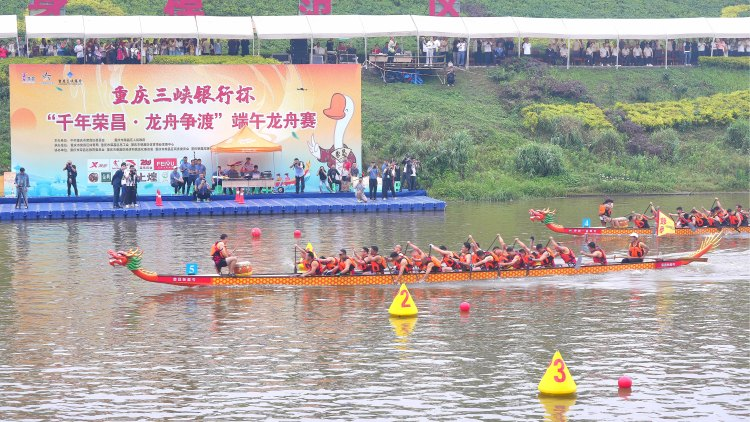 端午节假期,重庆市荣昌区濑溪河畔,“千年荣昌·龙舟争渡”端午龙舟赛擂鼓开桨,上演了一场水上的“速度与激情”。