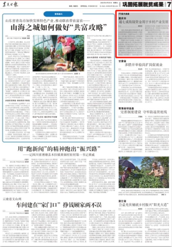 重庆市财政局相关负责人表示,重庆还将持续强化多元投入保障,支持打造城乡融合乡村振兴示范区建设。优先保障农业农村领域一般公共预算投入,提高土地出让收入用于农业农村比例。落实更加积极的财政政策,通过超长期特别国债、地方政府专项债、中央预算内投资支持农业农村领域项目建设。继续实施农业全产业链及农产品加工贴息、脱贫人口小额信贷贴息、现代设施农业建设贷款贴息等贴息政策,发挥政策性农担体系作用,激励金融机构向各类市场主体倾斜。