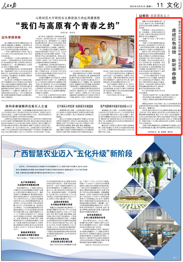 课程临近结束时,师生们围在一起。“以后的思政课,我们还要去探寻更多的红色故事,大家要把学到的知识讲给朋友、同学、家人。”桑嘉艺说。