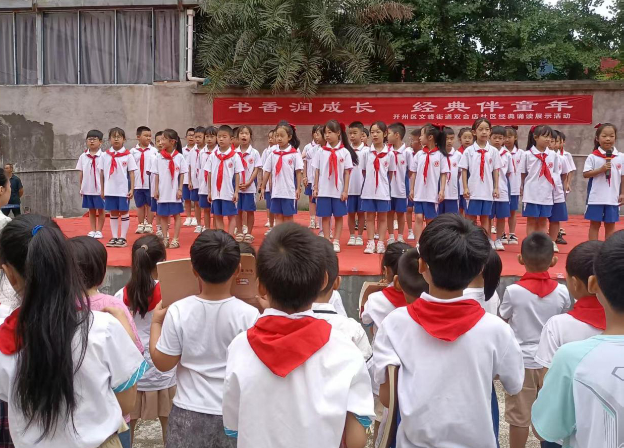 “人之初,性本善……”6月22日,重庆市开州区文峰街道双合店社区在社区小广场举办“书香润成长 经典伴童年”国学大课堂经典诵读展示活动。50余名社区儿童通过诵读、演绎经典,感受中华文化的深厚底蕴,展现新时代少年风采。