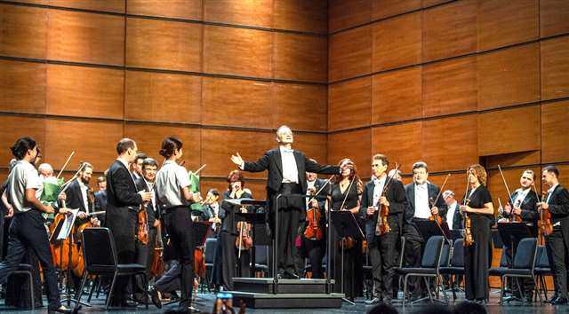 ▲2023年9月17日,重庆大剧院大剧场,柴可夫斯基交响乐团音乐会现场,丹尼斯·罗特耶夫和全体演奏家们正在接受重庆乐迷们最热烈的掌声。(资料图片)记者 郑宇 摄/视觉重庆