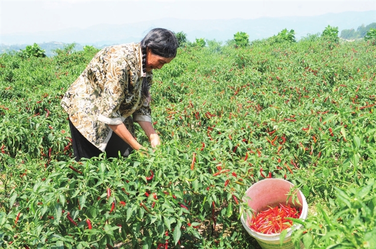“以前种辣椒,就怕行情不好烂在地里。现在实行订单农业,企业直接上门收购,无后顾之忧。”三星乡石星村村民谭弟慎今年种植辣椒11亩,他采摘着红透的辣椒,脸上洋溢着丰收的喜悦。
