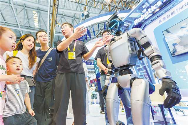 恰逢周末,多个展馆内人流如织,N3展馆可以用“爆满”来形容。记者走访发现,机器人,特别是人形机器人,成为本届智博会备受追捧的“顶流”之一。