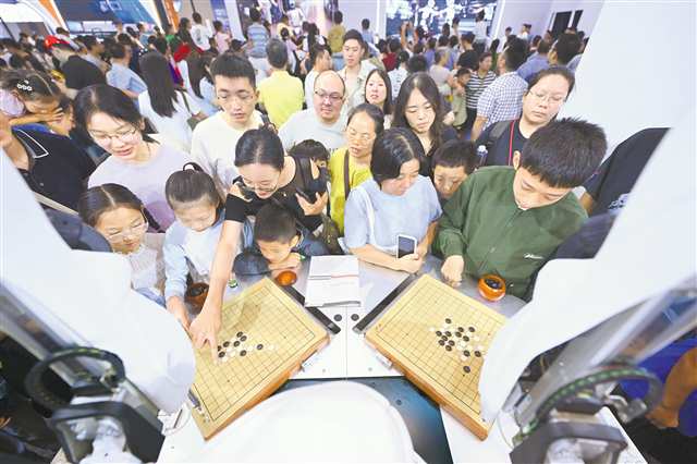 “昨天就看新闻说这里有机器人格斗,今天专门带孩子来看。”市民刘庆隆说,之前刷到过机器人格斗的短视频,没想到本届智博会就有展示,于是就赶过来了。