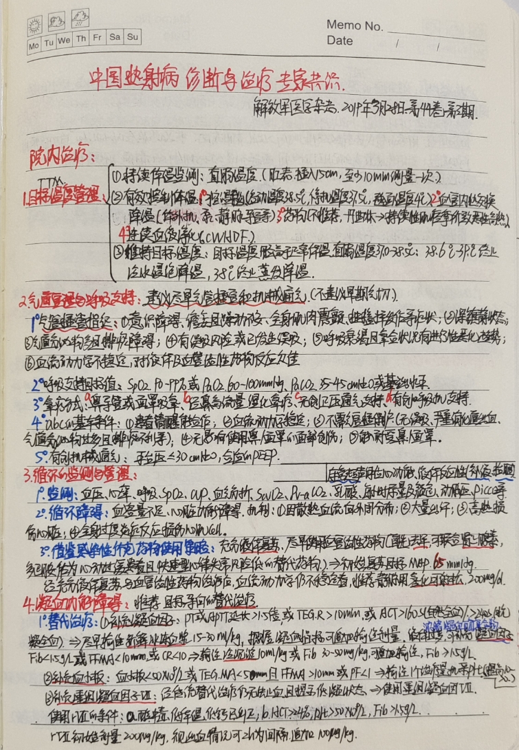 “很多人以为热射病只是严重一点的中暑,其实它是高温环境下最危险的急症。”熊成海说,“2015年《解放军医学杂志》就阐述过该病症的诊断与治疗方法,2021年11月《中华急诊医学杂志》更是明确了热射病急诊院内治疗的‘十早’步骤。”这些关键信息,都被他整理在了笔记本里。