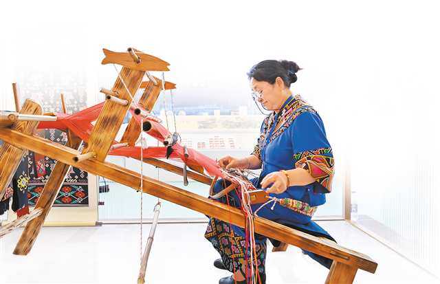 ▲9月15日,重庆悦来国际会议中心,长江流域非遗精品展开展。重庆市展区的“西兰卡普”制作技艺。记者 齐岚森 摄/视觉重庆