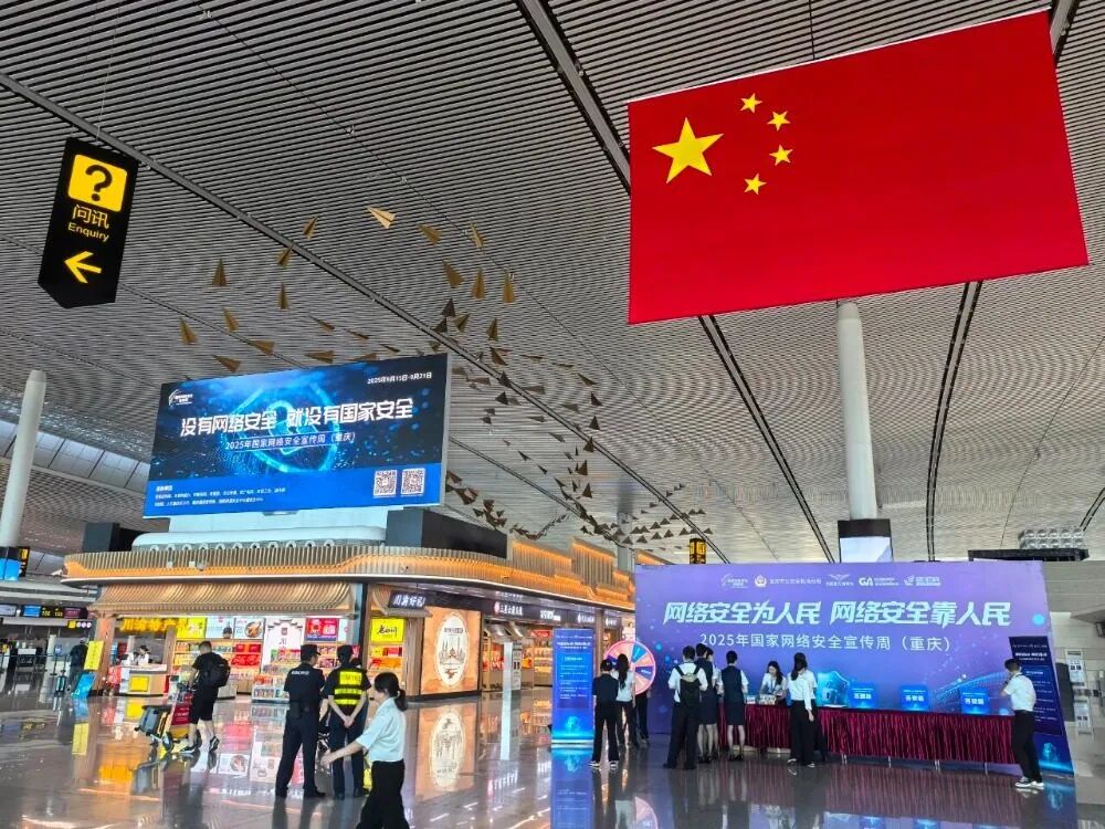 马上消费、渝快办等APP在启动页投放网络安全主题海报,区县LED屏幕、数字广告屏、机场屏幕等也纷纷展播主题视频和海报等内容,广泛营造网络安全浓厚的氛围。