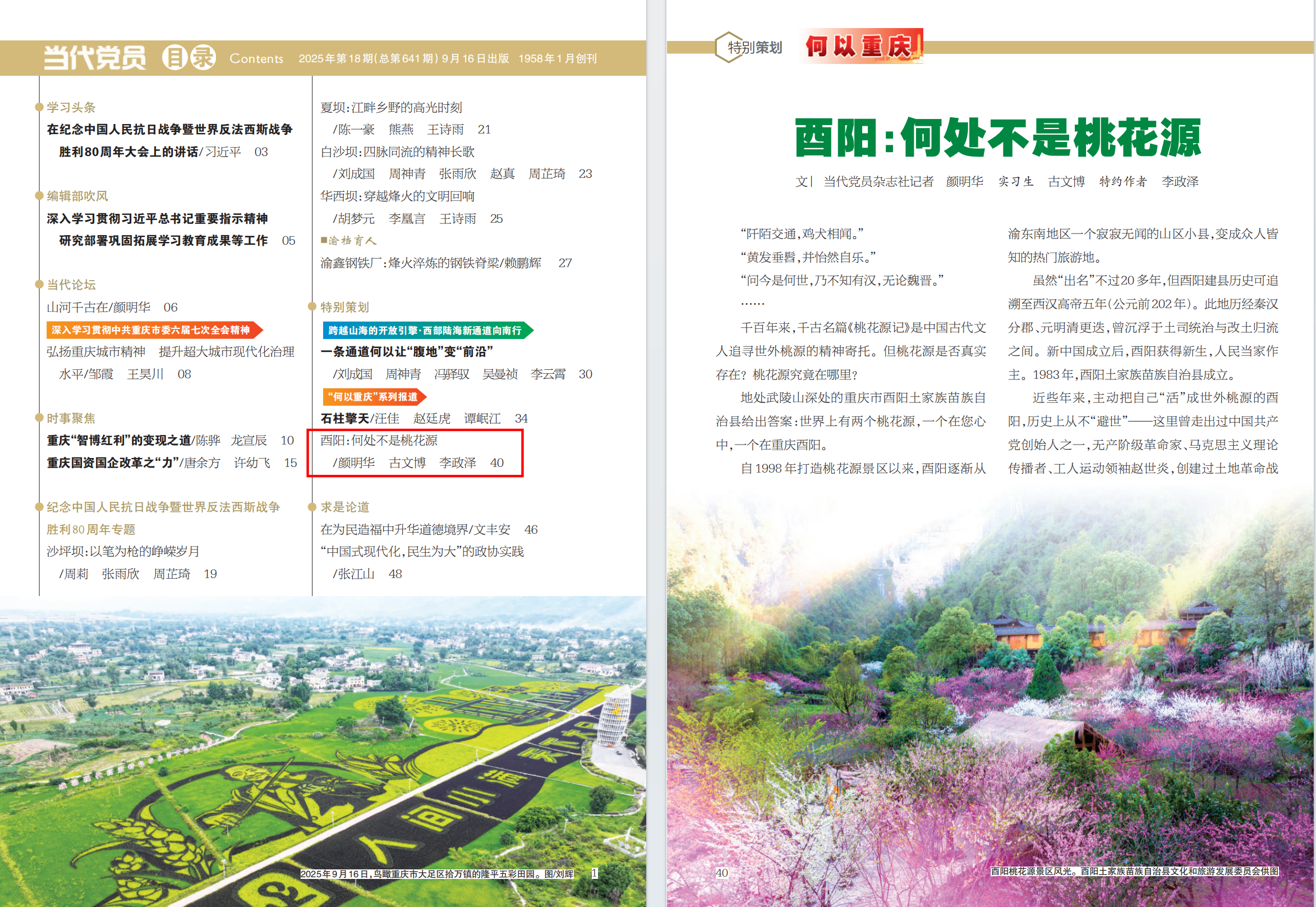 昨天刚刚举行的酉阳自治县委十五届十次全会提出,“高水平建设现代版‘桃花源’ ,加快打造现代化人民城市酉阳新图景,为谱写中国式现代化重庆篇章贡献酉阳力量”,为酉阳谋划桃花源新图景再增强劲动力。