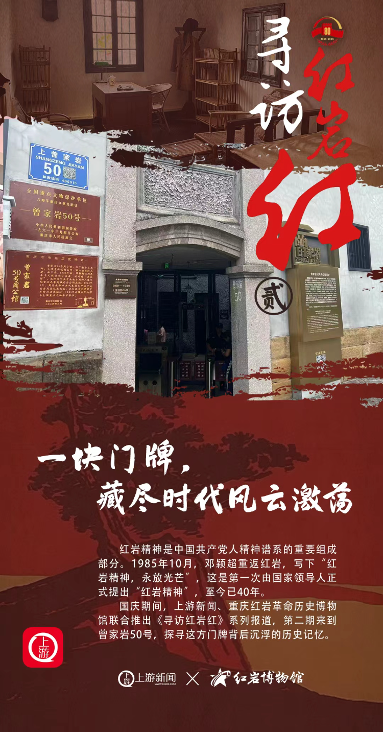 国庆期间,上游新闻、重庆红岩革命历史博物馆联合推出《寻访红岩红》系列报道。第二期,我们推开曾家岩50号周公馆大门,看一块门牌背后的红岩故事,一同重温那段风云激荡的岁月。