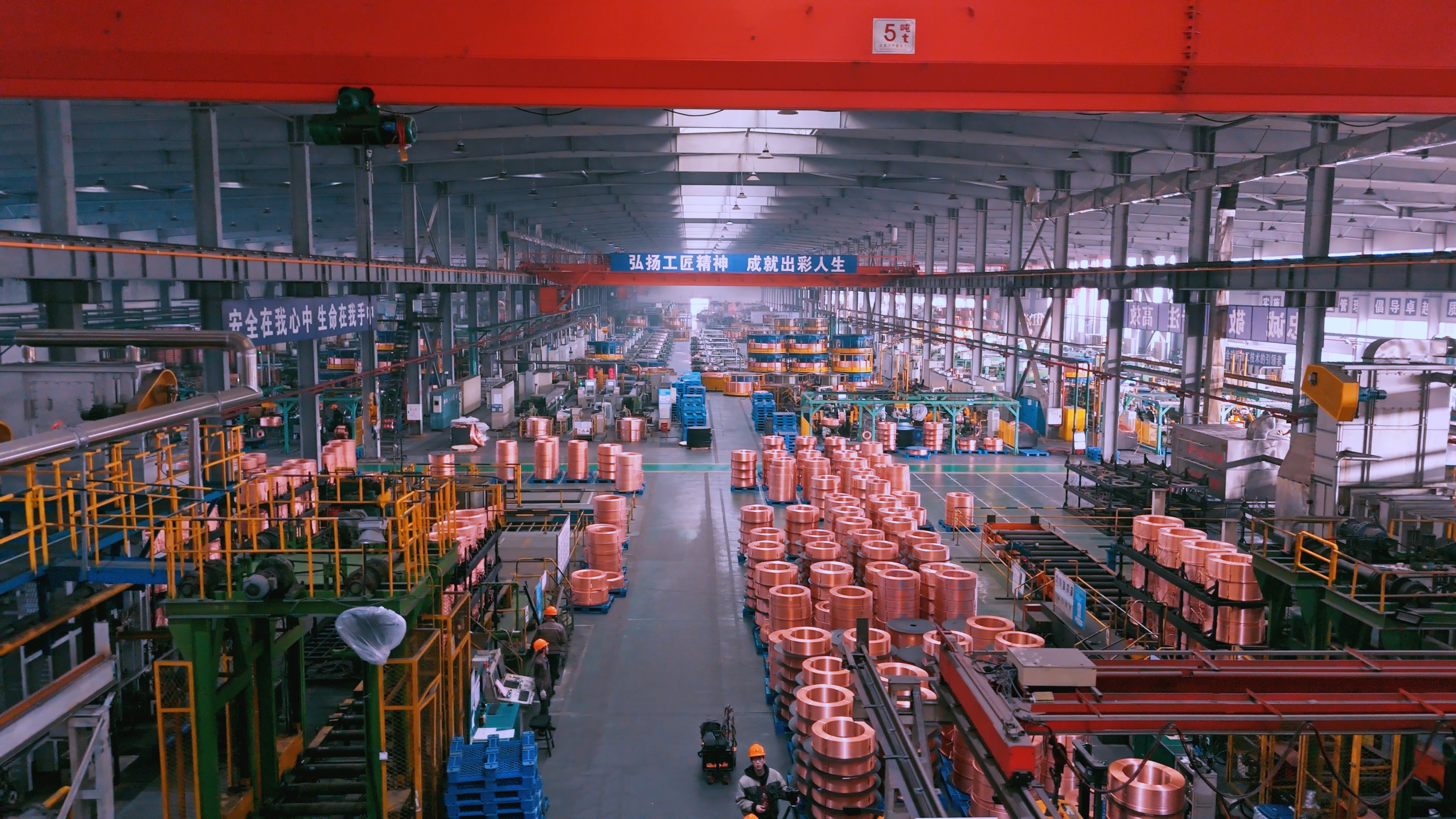 不远处,重庆平湖金龙精密铜管有限公司生产车间内机器轰鸣,每天日产精密铜管200吨,去年在万工业产值超过160亿元,同样正加速打造200亿级铜及铜合金材料产业链。