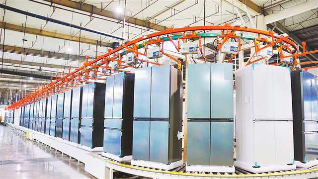 工厂生产线负责人介绍,冰箱产品制造工序包括挤板、注塑、冲切、发泡等流程,产品从排产到执行调度的全过程颇为复杂。