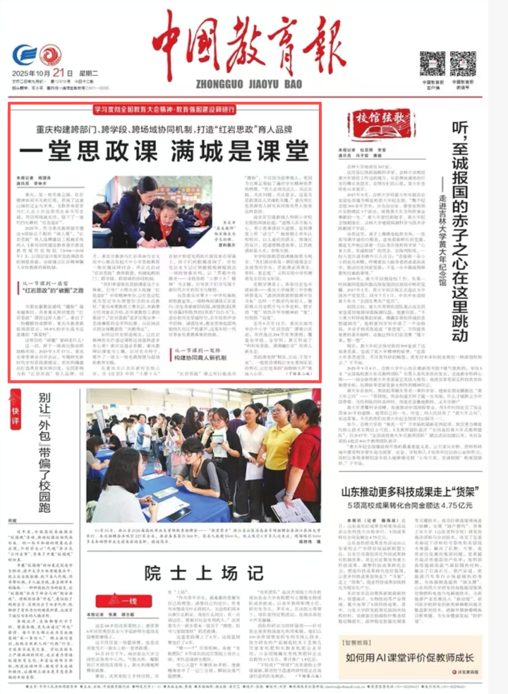 重庆正以全域为课堂、以社会为教材,构建“课堂—校园—社会”三位一体的“大教育场”。