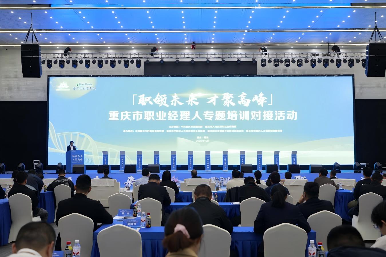 10月20日,“职领未来·才聚高峰”重庆市职业经理人专题培训对接活动在重庆国际生物城举行。市人力社保局二级巡视员柳东升出席活动并讲话,巴南区政府党组成员、副区长代建红出席活动并致辞,市委组织部、市人力社保局有关处室负责人,两江新区、重庆高新区、北碚区、巴南区、永川区、璧山区委组织部、人力社保局、人才创新创业服务港有关负责人和职业经理人代表、企业代表、高校代表等120余人参加活动。