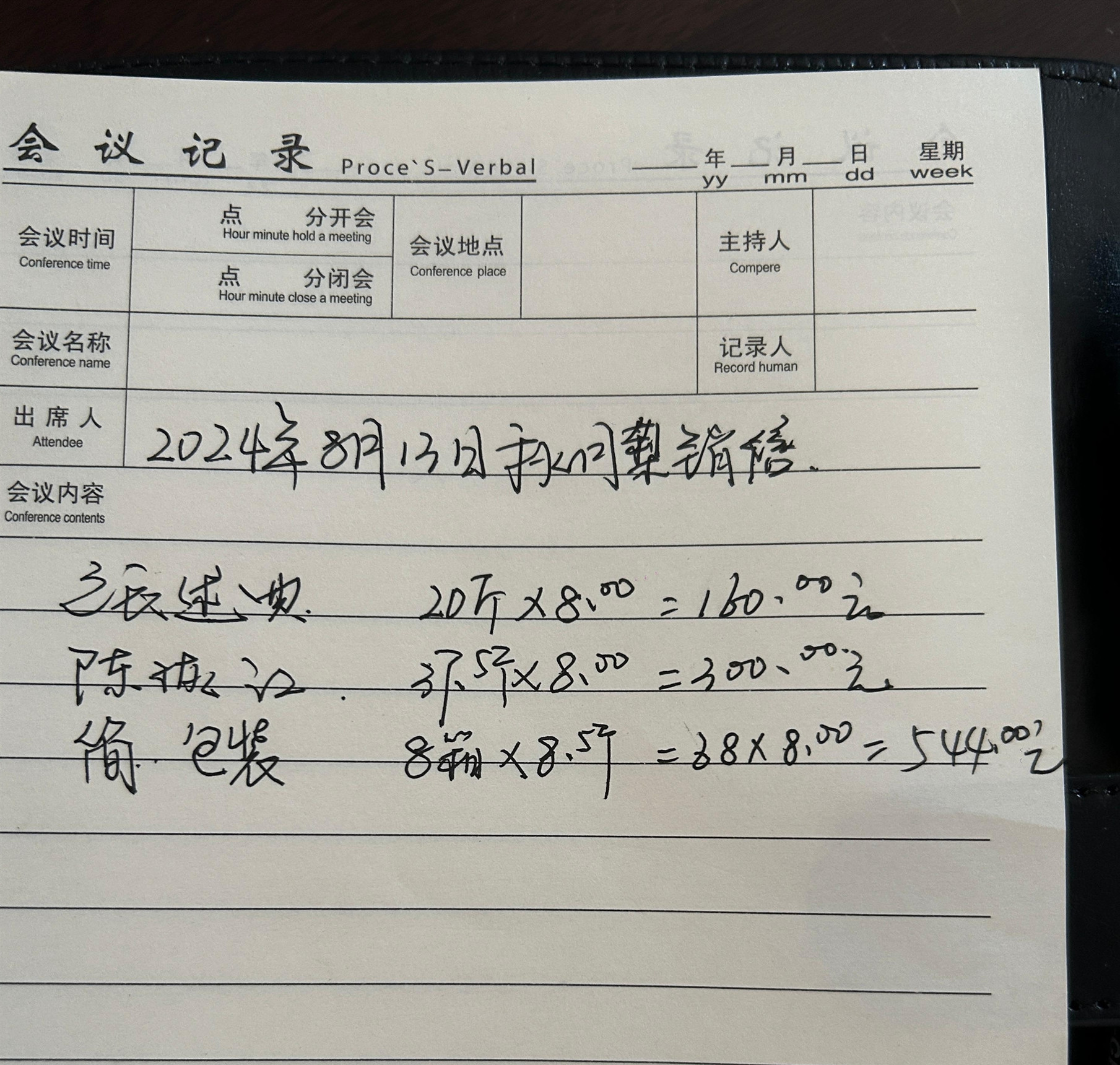 “2024年8月13日秋月梨销售:张述典,20斤,160元;陈恢江,37.5斤,300元;简包装,8箱,544元。”翻开张发国的工作笔记本,其最后一页记录着这样一笔账。