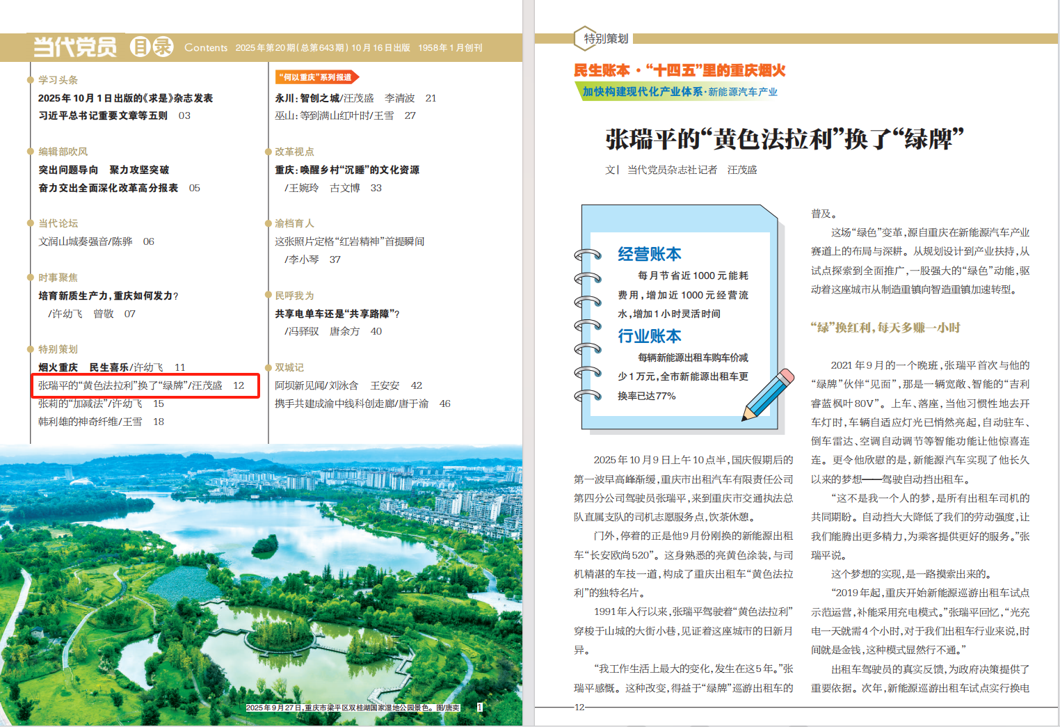 在“十四五”即将收官,“十五五”蓄势启航之际,中共重庆市委当代党员杂志社跳出传统报道视角,以账本为切入点,推出“民生账本·‘十四五’里的重庆烟火”系列报道,围绕加快构建现代化产业体系、全面深化改革扩大高水平对外开放、积极探索超大城市现代化治理新路子、大力推进城乡融合发展四大方面,组织记者深入生产生活一线,记录政策温度如何浸润万千家庭、发展红利如何转化为百姓脸上的笑容。