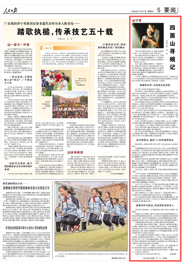 10个年头的坚守,他俩准确鉴别蛾类昆虫700多种,采集重要标本千余件,出版四面山鳞翅目昆虫图鉴,为研究当地及周边区域物种起源演化、分布规律、生存现状及变迁等积累了宝贵的第一手资料。
