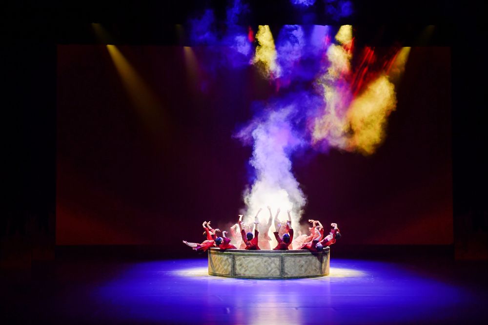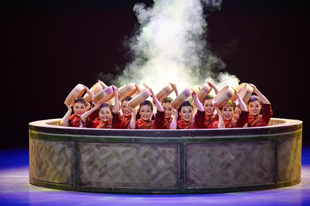 3分半钟的表演,她们围着一只巨大的“蒸笼”,如浪花一般起落、跳跃、舒展,用灵动的舞步演绎农家民俗场景。