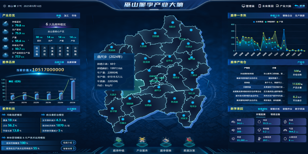 “以前县里的果农,很大程度上是靠天吃饭。用上‘产业大脑’后,实现了从望天收到‘掌中控’。”巫山县果品产业中心主任刘仁鹏说。