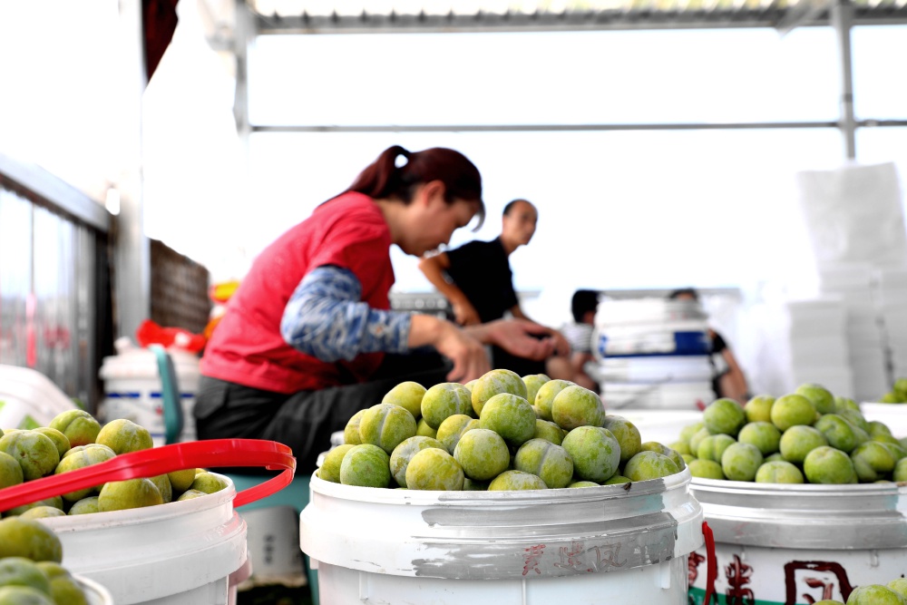 ▲巫山县曲尺乡权发村,果农在分选巫山脆李。特约摄影 王忠虎
