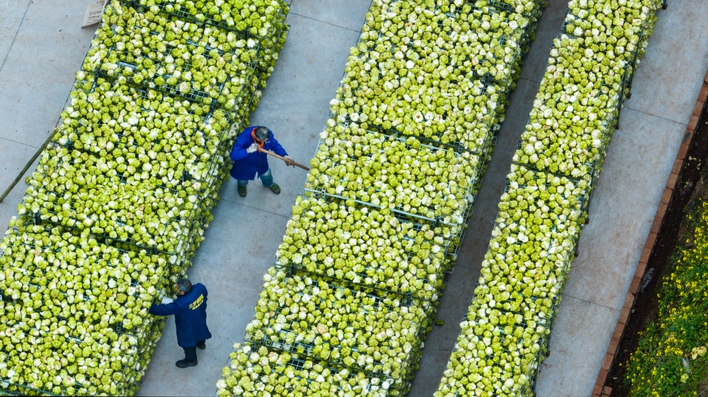 ▲涪陵区蔺市镇江渚农业榨菜加工厂内,工人师傅正在检查青菜头的风干状况。记者 张春晓 摄