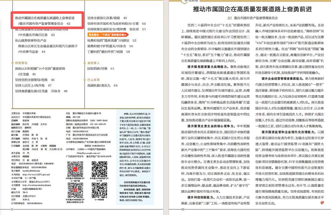 党的二十届四中全会对“十五五”时期乘势而上、接续推进中国式现代化建设作出顶层设计、战略擘画。重庆国资国企系统将以学习贯彻党的二十届四中全会精神为动力,始终坚持和加强党对国有企业的全面领导,科学编制实施重庆市国资国企“十五五”规划,抓好“五个能力”建设,推动市属国企在高质量发展新跑道上不断向上向好。