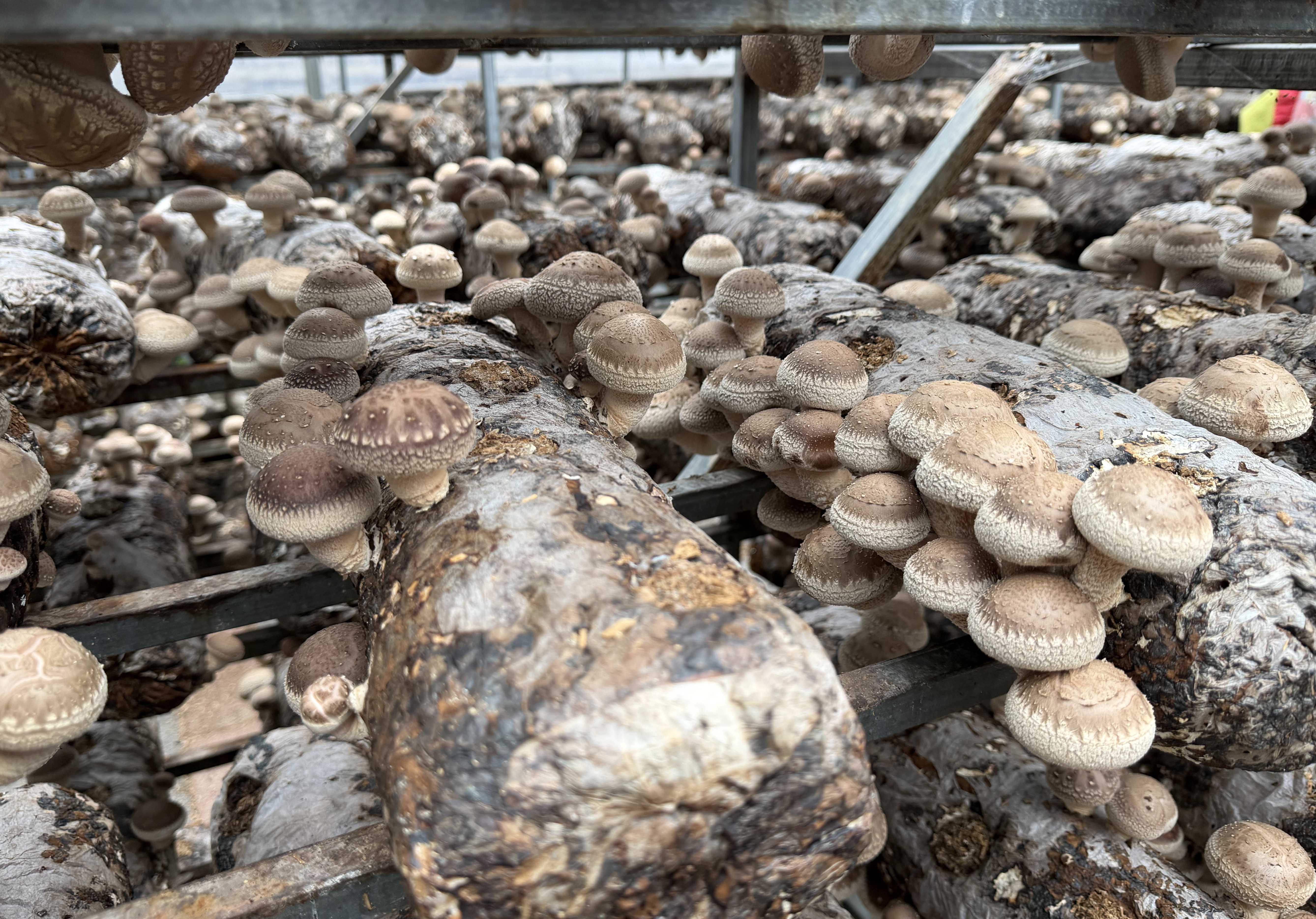 初冬的早晨,薄雾轻拢,寒意渐浓。但重庆市城口县沿河乡联坪村的香菇种植大棚内暖意融融、生机盎然,一片欣欣向荣的景象。钢架上一排排菌棒整齐列队,菌棒上一簇簇浅褐色的香菇争先恐后地探出“小脑袋”,它们圆润厚实、伞盖饱满、纹路清晰,像一朵朵绽放的绚丽花朵,静静地宣告着丰收季的来临。