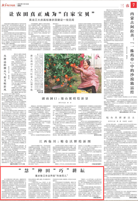 秋日的重庆垫江田野,宛如一幅被现代科技精心勾勒的农业画卷,四处洋溢着高效生产的蓬勃生机。植保无人机在低空精准穿梭,为作物进行病虫害防治;智能阀门有序运作,将水源精准送达作物根部;大型农机在田间高效完成耕种与收割任务……像这样科技赋能农业的场景在垫江早已屡见不鲜。