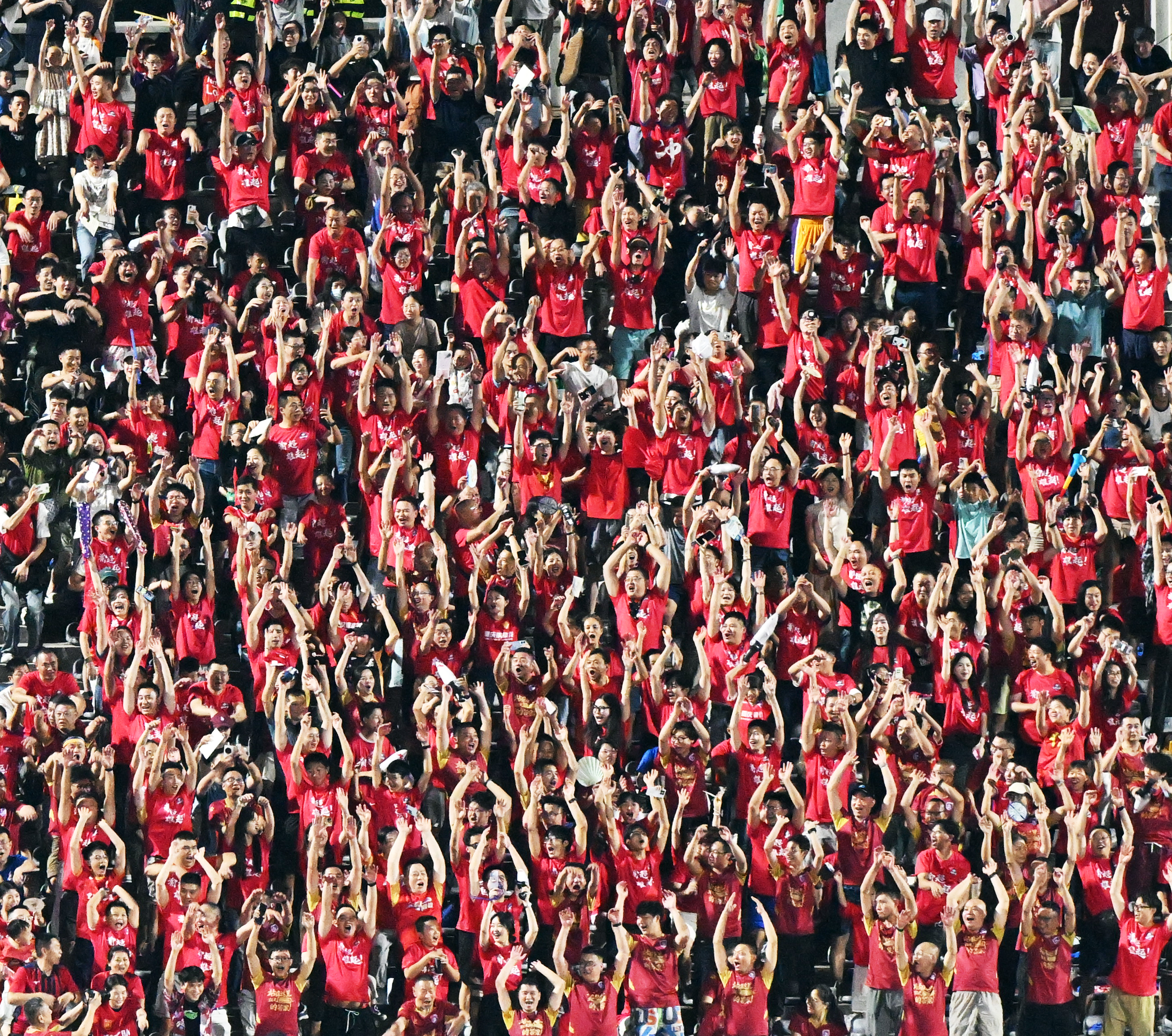 ▲9月13日晚,“渝超”揭幕战在大田湾体育场打响。图为揭幕战现场球迷。记者 熊 明 摄/视觉重庆