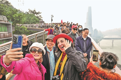 日前,人们在重庆半山崖线鹅岭栈桥观光、拍照。
